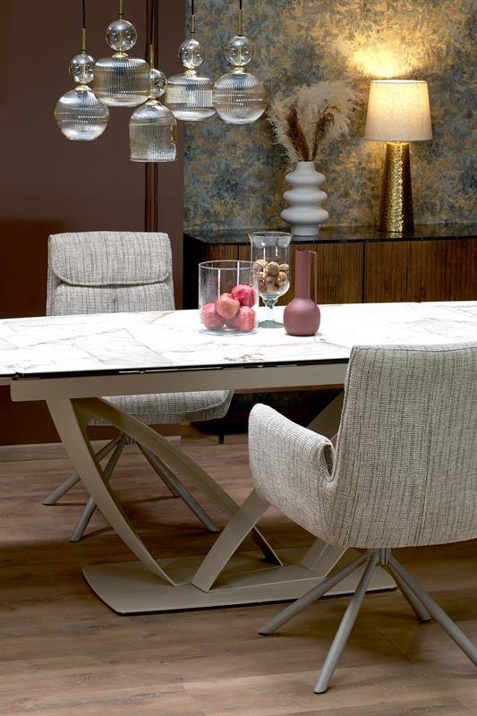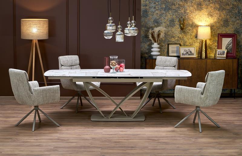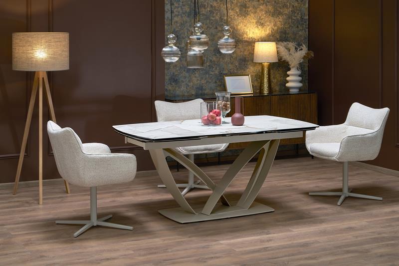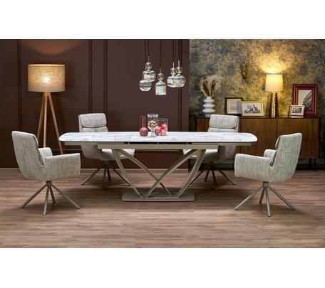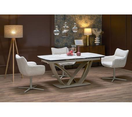 Стол обеденный Halmar VINCENZO 160 раскладной (белый мрамор/черный/золотой)