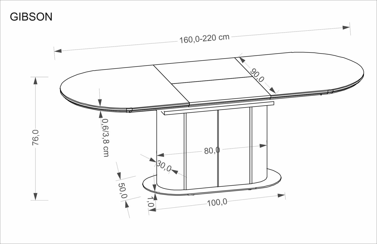 Стол обеденный HALMAR SORBUS 100 раскладной (дуб натуральный/черный)