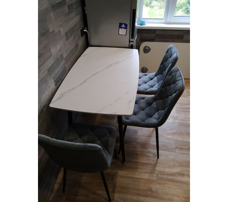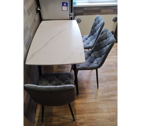 Стол обеденный Halmar VOLANT 140 раскладной (черный мрамор/дуб золотой)