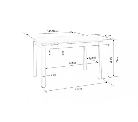 Стол обеденный Halmar OSMAN раскладной (белый мрамор/черный)